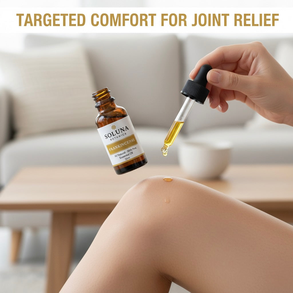 Steam-distilled from ancient tree resin, Soluna Botanica Frankincense Oil delivers the healing power trusted for centuries, now backed by thousands of verified customer results. This therapeutic-grade oil penetrates deep to soothe joint pain, reduce inflammation, and support skin healing without pills, without chemicals, without compromise. Whether you're managing arthritis, leg cramps, or age-related discomfort, Frankincense offers a safe, natural path to the relief you deserve. Clean, pure, and proven effective.